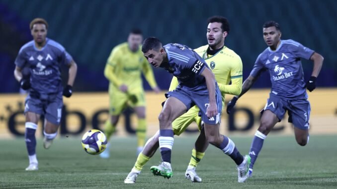 Първото полувреме се превърна в тактическо надиграване, белязано от светкавични преходи и самопожертвователни действия в защита. Акрам Бурас беше постоянна заплаха, напредвайки смело, за да отправи свиреп удар, който за малко не попадна в целта. В другия край на терена Кристиан Макун показа невероятна храброст, хвърляйки се в краката на Кайо Видал, за да блокира опасен изстрел. С наближаването на края на полувремето техничната игра отстъпи място на по-физически и груб стил. Двата отбора влязоха в тежки единоборства в центъра на терена и тъй като никой не бе склонен да отстъпи и педя земя, те се оттеглиха в съблекалните при нулево равенство.